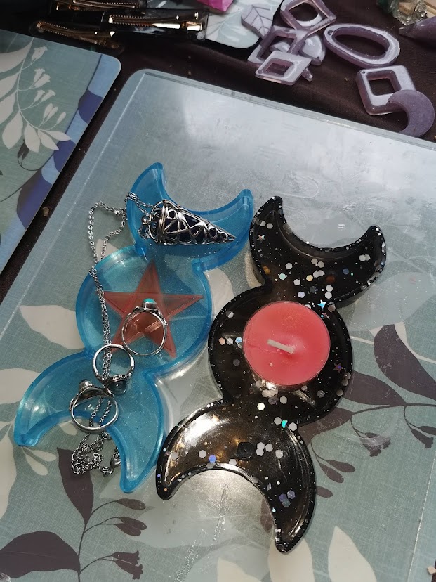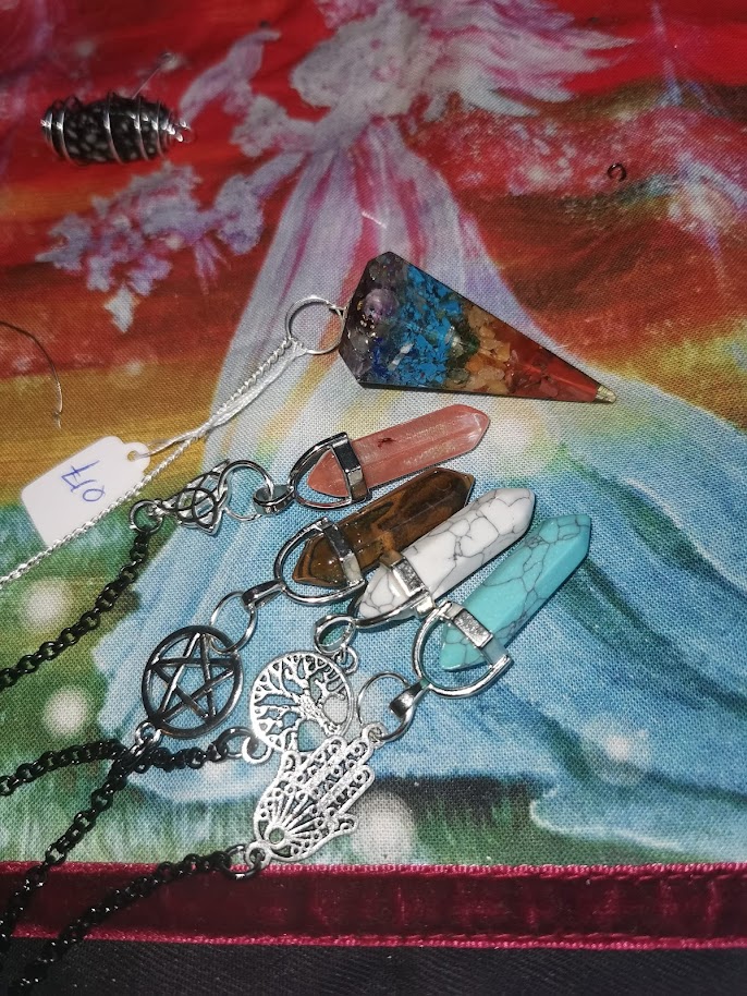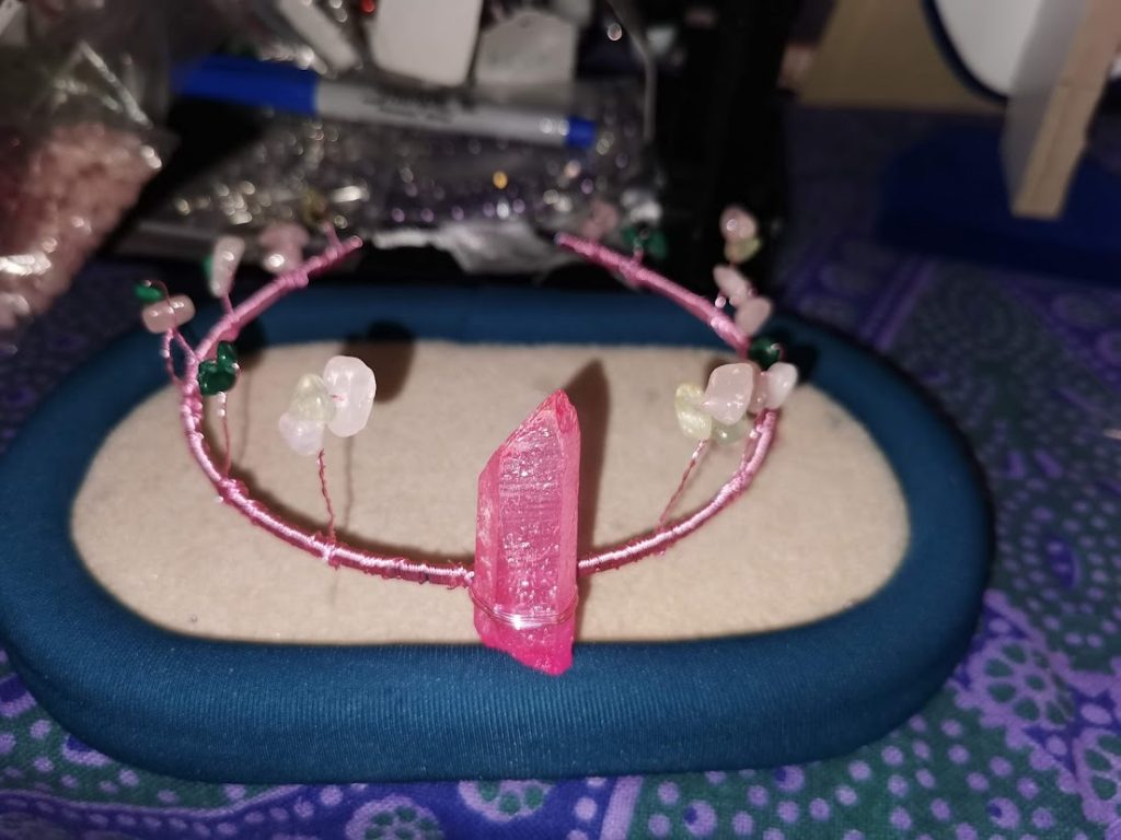 Necklaces, bracelets, earrings and rings. Crystals, Tiaras, Seasonal decorations and wands. Everything is handmade apart from the crystals, they are infused with healing vibrations and Reiki energy.